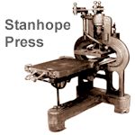 IRON PRESSES - The development of the iron hand press (shown on the right) in the early 19th century resulted in a press that was capable of much greater impressional strength. The first of these presses was the Stanhope press, designed by the Earl of Stanhope in 1800. Production surpassed that of the wooden presses and it became possible to print 100 -- and not long after, far more -- pages in an hour.
